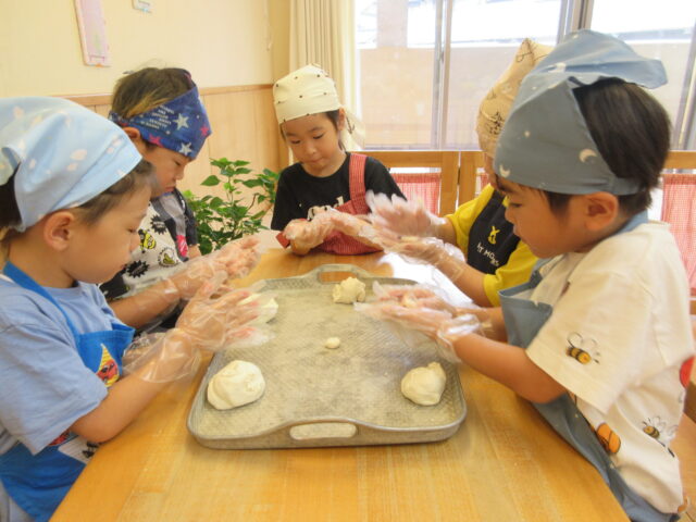 「先生が耳たぶくらいのやわらかさって言ってたよ」と言いながら、上手にちぎって丸めていました。