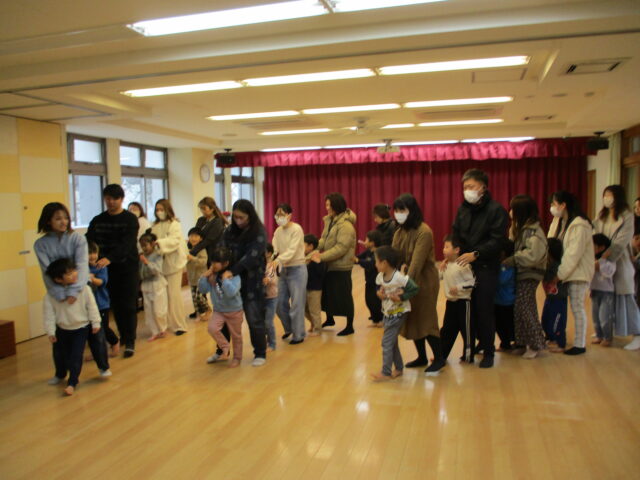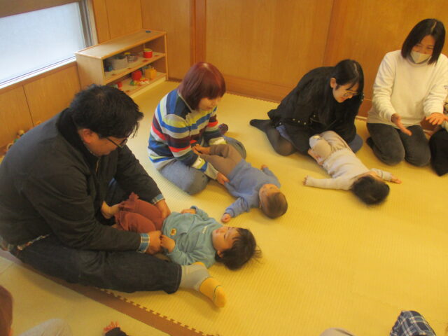 いつも遊んでいるわらべ歌、ふれあい遊びを保護者の方と一緒に楽しみました。