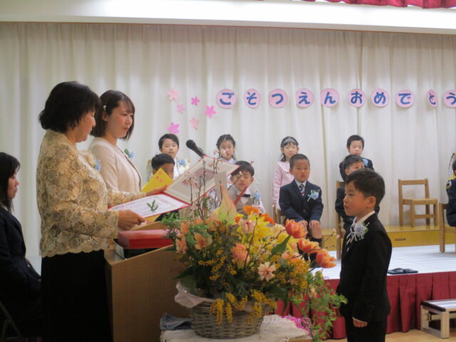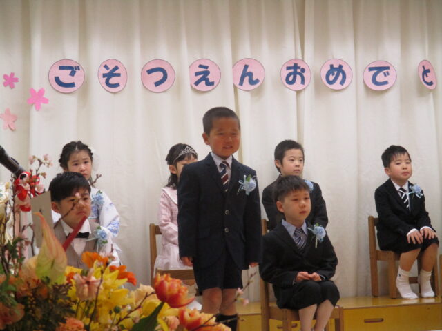 卒園児15名が出席し、とても良い天気の中、卒園式を迎えることができました。