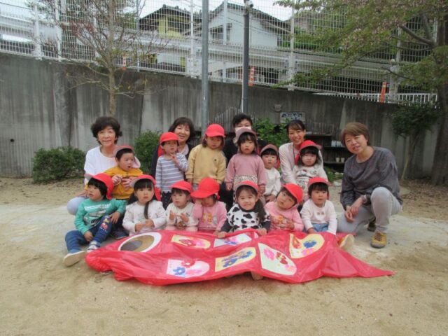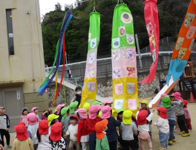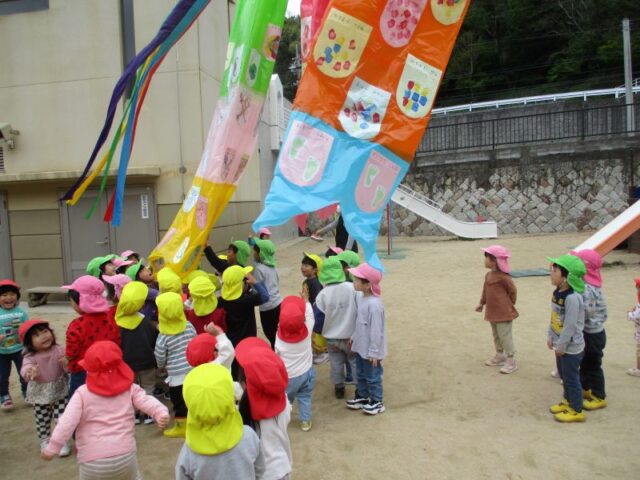 4月14日にこいのぼりあげがありました。一人一人が作ったうろこを貼り合わせて、大きなこいのぼりが完成しました。